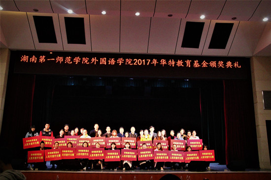11月28日上午,外国语学院首届华特教育基金颁奖典礼在科技楼演播厅举行。华特教育总校长王浩平、华特教育相关部门负责人、校学工处副处长欧阳伶俐、外国语学院及其各部门负责人、全体辅导员参加典礼。颁奖典礼由外国语学院党总支副书记杨虎智主持。