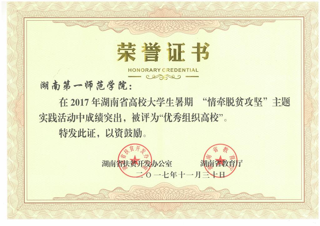 2017年暑期,为响应湖南省委、省政府“情牵脱贫攻坚”主题实践活动部署,我校派出了37支队伍111人(其中教师37人、学生74人),深入娄底市112个贫困村,开展为期15天的社会实践调研活动。师生们战高温,斗酷暑,克服重重困难,高质量完成了脱贫攻坚各项任务。