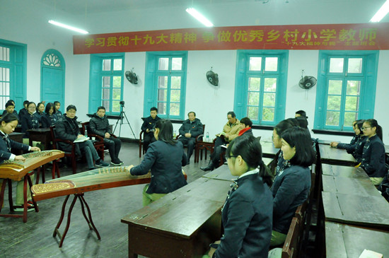 班会在古筝合奏《浏阳河》悠扬的乐曲中拉开了序幕。在观看了十九大开幕式精彩片段后,刘志敏结合自身实际分享了学习十九大精神的感想,与现场嘉宾对同学们关注的“新时代”“优先发展教育”等十九大热词进行了深入浅出的解读和分析,并就如何落实习近平总书记提出的“努力让每个孩子都能享有公平而有质量的教育”“当代青年在实现中国梦的生动实践中放飞青春梦想”等问题与同学们进行了深入交流。同学们纷纷表示,学习十九大精神很受鼓舞,今后要提升教师素养,坚持教育梦想,坚守乡村教育,在实现中华民族伟大复兴的新征程中谱写人生绚丽篇章。班会中,同学们表演了原创朗诵节目《坚守》,表达了对坚守乡村教育事业的决心。刘志敏对我校学生学习贯彻十九代精神提出了几点希望。他指出,作为新时代的大学生要有新的作为,一要不忘初心、牢记使命,树立崇高理想并为之奋斗。二要增强“四个意识”、坚定“四个自信”,深刻认识“四个伟大”对于建设中国特色社会主义伟大事业的重要性。三要肩负起当代青年的责任和使命,在个人学习的同时影响更多人一起学习,做到学以致用,将十九大精神落实到实现“两个一百年”奋斗目标的新征程中去。班会结束时,同学们还向学校赠送了集体创作的剪纸作品《十九大春风吹进校园》。