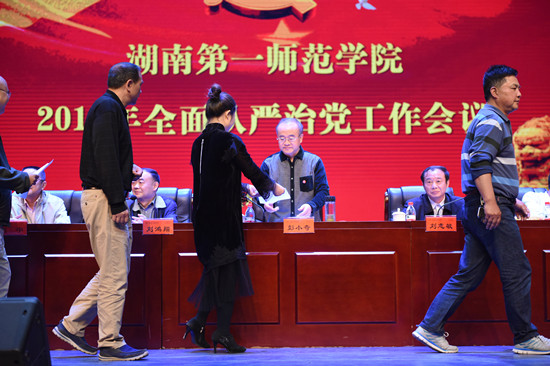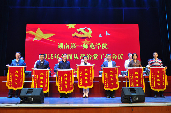 4月10日下午,我校2018年全面从严治党工作会议在东方红校区田汉剧场召开。全体在家校领导、全校副科级以上实职干部、全体教职工党员、学生党员代表、离退休党总支书记、纪检委员,各级人大代表、政协委员,各民主党派主委参加会议。会议由校党委副书记刘志敏主持。