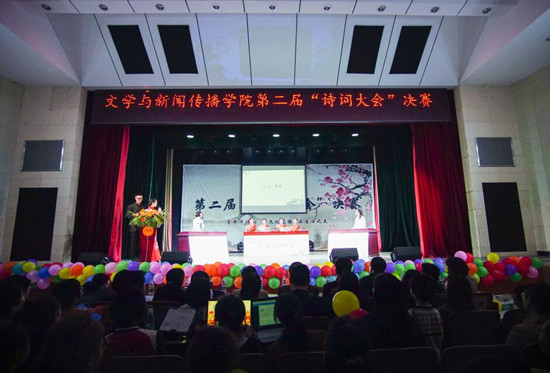 据悉,2017年,文传院结合传统文化全面复兴的大背景,仿照中央电视台《中国诗词大会》栏目形式,举办了第一届“诗词大会”。在全院师生的共同努力下,历经半年的筹备,活动取得了巨大成功,在全校产生了良好反响。后文传院符昕同学被选为央视2018年《中国诗词大会》第三季百人团选手,参与节目录制。