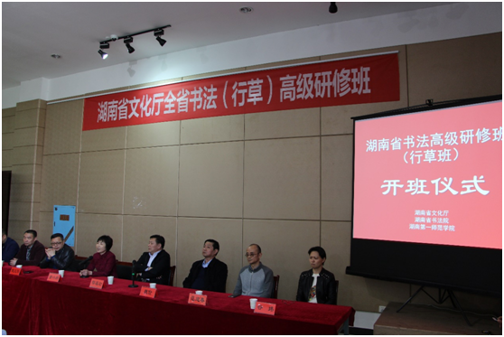 日前,由湖南省文化厅、湖南省书法院主办,我校美术与设计学院承办的全省书法(行草)高研班在我校成功举办。湖南省文化厅副厅长、湖南省书法家协会主席鄢福初,我校校长童小娇,湖南省艺术研究院院长魏俭,湖南省文化厅艺术处处长倪文华,湖南省书法院副院长谷玮,美术与设计学院院长范迎春、党支部书记苏美华以及由全省各市推荐的中书协会员和省书协会员共33名学员出席开班仪式。