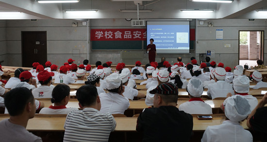 为进一步增强我校食堂员工的食品安全意识,不断提升服务质量,5月4日下午,后勤处邀请长沙市高新区食品药品监督管理局的胡国祥科长和长沙市饮食安全协会万丽玲教授,来学校对东方红校区食堂员工及门店承包人近200人进行了食品安全知识培训。
