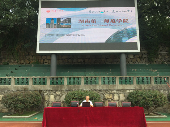 9月11日下午,校党委书记彭小奇在城南书院校区运动场为2018级六年制公费定向师范生作入学教育讲座。讲座由城南书院院长、党总支书记张尚晏主持。城南书院党政负责人、辅导员及全体新生聆听了讲座。