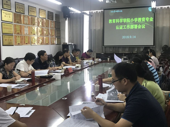 江正云指出,小学教育专业认证时间紧、任务重,专业认证工作在省内尚无先例可循,已经开始专业认证的各试点省份发展也不均衡。小学教育专业作为湖南省首批参加认证的试点专业,很有可能将面对较为严格的认证标准,工作的难度会偏大。他强调,要把认证工作做好,必须做到“学生中心、产出导向、持续改进”,在“以评促建、以评促改”的基础上,做到“以评促强”。对此,他提出以下工作要求:一是解读标准。弄清楚指标内涵是什么,要做些什么工作,什么人来做。二是突出特色。自评报告要凝聚亮点、挖掘特色,充分展示我校小学教育专业的特点。三是持续改进。进一步完善2018版小学教育人才培养方案,将专业认证理念融入新方案中,将培养要求纳入教学大纲中,持续改进,积累认证经验,为学校其他师范专业认证提供参考。