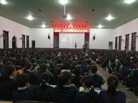 针对当前大学校园“非法校园贷、电信网络诈骗、传销”案件多发现状,为提高我校学生的安全防范意识和技能,学校在全体新生中开展了5场、为期1周的专题宣传教育活动。本次活动采取讲座的形式进行,特邀湖南省公安厅新媒体工作室禹亚钢警官担任主讲。
