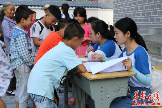 马克思主义学院“三下乡”实践团进入中湾村小学第一天就热热闹闹地开始招生,仅用半天时间,共招收暑假夏令营活动学生81名,其中留守儿童60名。实践团与村小共同建立了留守儿童阳光活动室,为这些孩子捐赠了价值2万元的书籍、球类、衣物,并建立了留守儿童成长档案,拟在山外的企业主、心理咨询师、教师等热心人士与山里的留守儿童之间搭起一座长期交流、帮扶的关爱彩虹。
