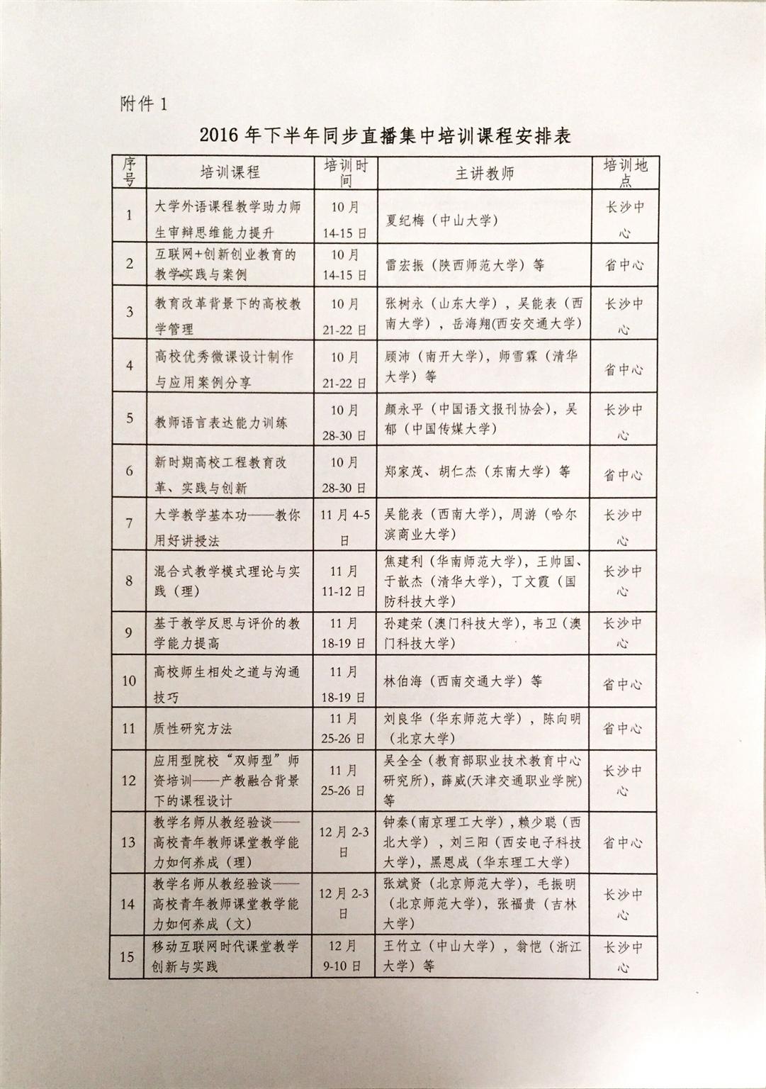 根据《关于资助高校教师参加网络培训的通知》(湘高培函〔2016〕2号)和《关于资助高校教师参加网络培训的补充通知》要求,现将我校2016年下半年教育部全国高校教师网络培训工作安排通知如下: