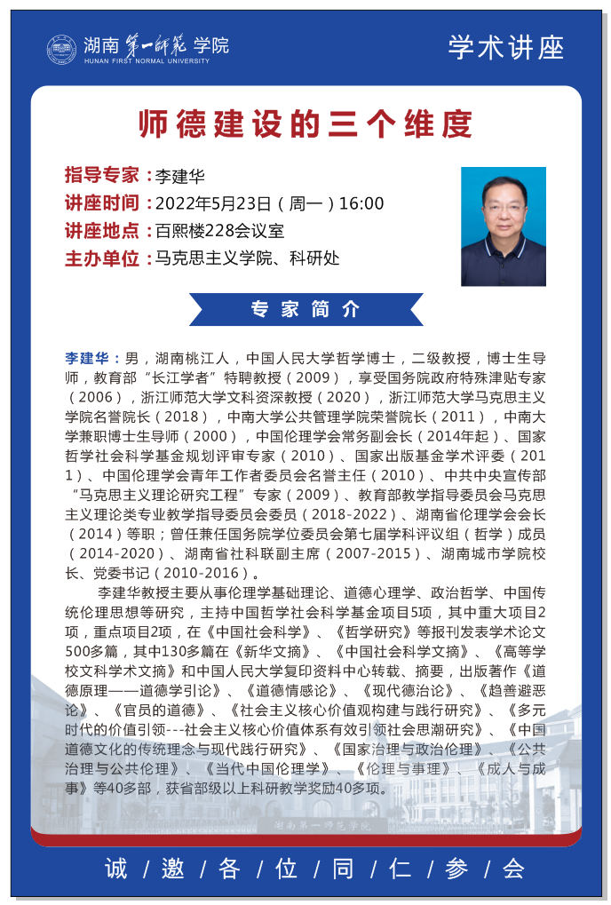 上一篇:武汉大学哲学学院李建华教授应邀来我校讲学