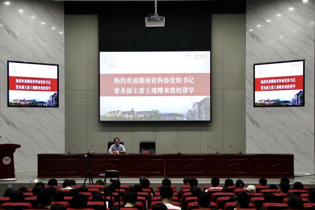 6月1日下午,湖南省科协党组书记、常务副主席王瑰曙应邀来我校开展题为“少年强则中国强——为提高青少年科技素养而努力”的学术讲座。校党委书记罗成翼、校长童小娇、原党委副书记刘志敏、科研处副处长田祖伟、物理与化学学院党政班子成员、教师代表参加了这次讲座。讲座由副校长曹兴主持。