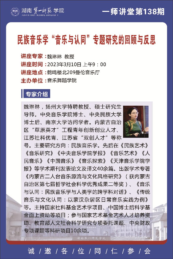 上一篇:学术预告|一师讲堂第139期:整体性·动态性·互文性:流域视野下的线性文化空间叙事——以长江流域采茶歌舞为例