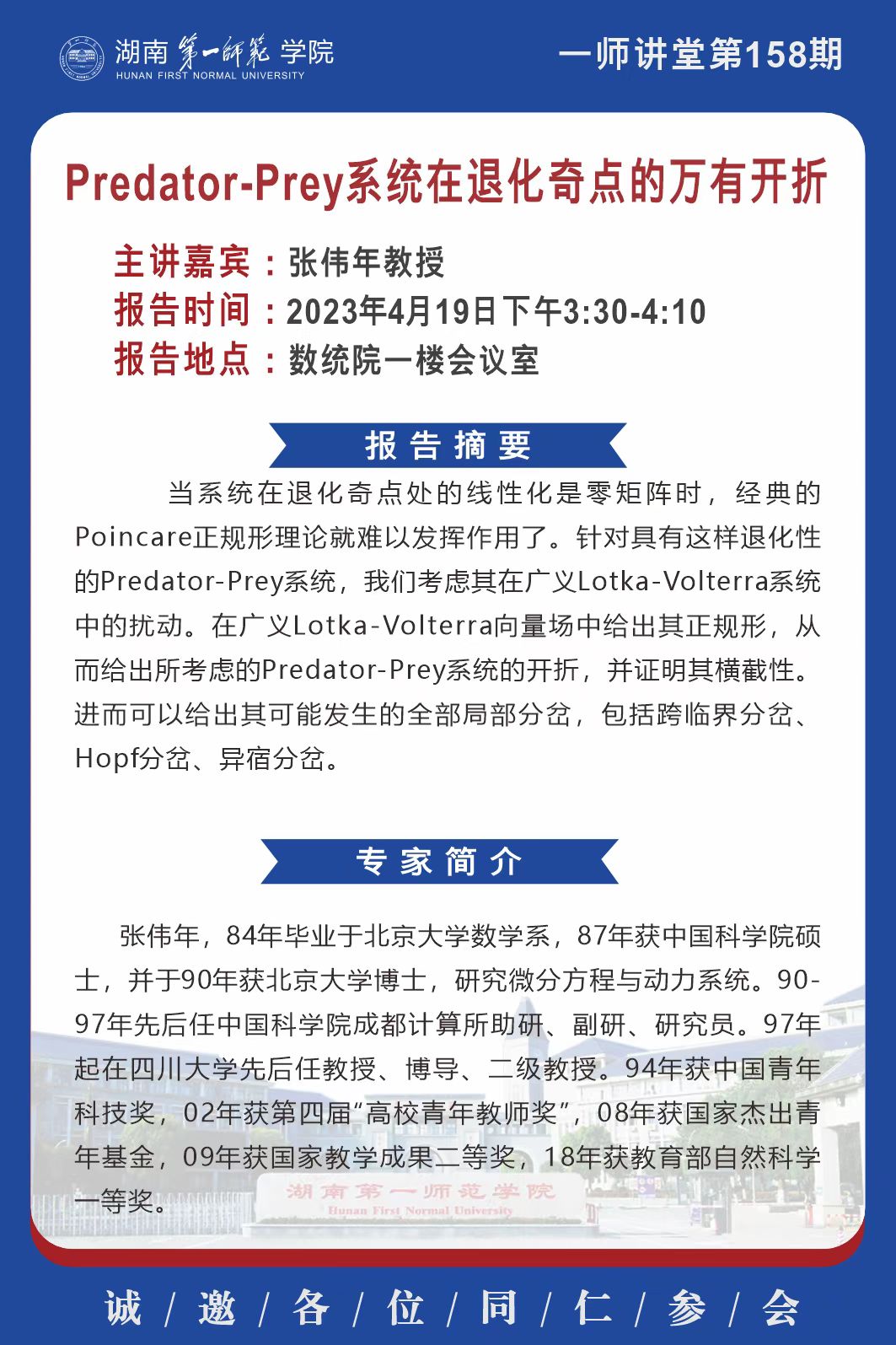 上一篇:学术预告|一师讲堂第160期:Some Development on Nonlocal Dsipersal Equations; The Stability of Diverging Traveling Fronts and Threshold Phenomenon for the Buffered Bistable System; 一类传染病模型的传播性质;Effect of Nonlocality on the Dynamics of Memory-based Diffusion Equations