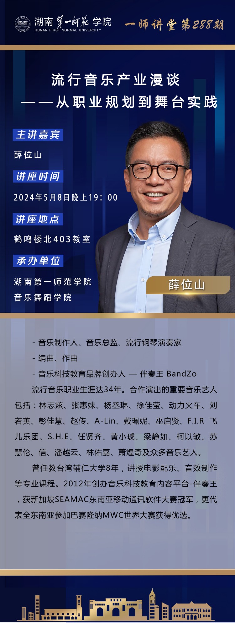 学术预告|一师讲堂第288期:流行音乐产业漫谈——从职业规划到舞台实践