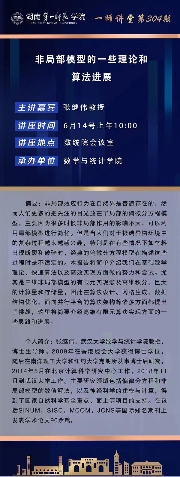 学术预告|一师讲堂第304期:非局部模型的一些理论和算法进展