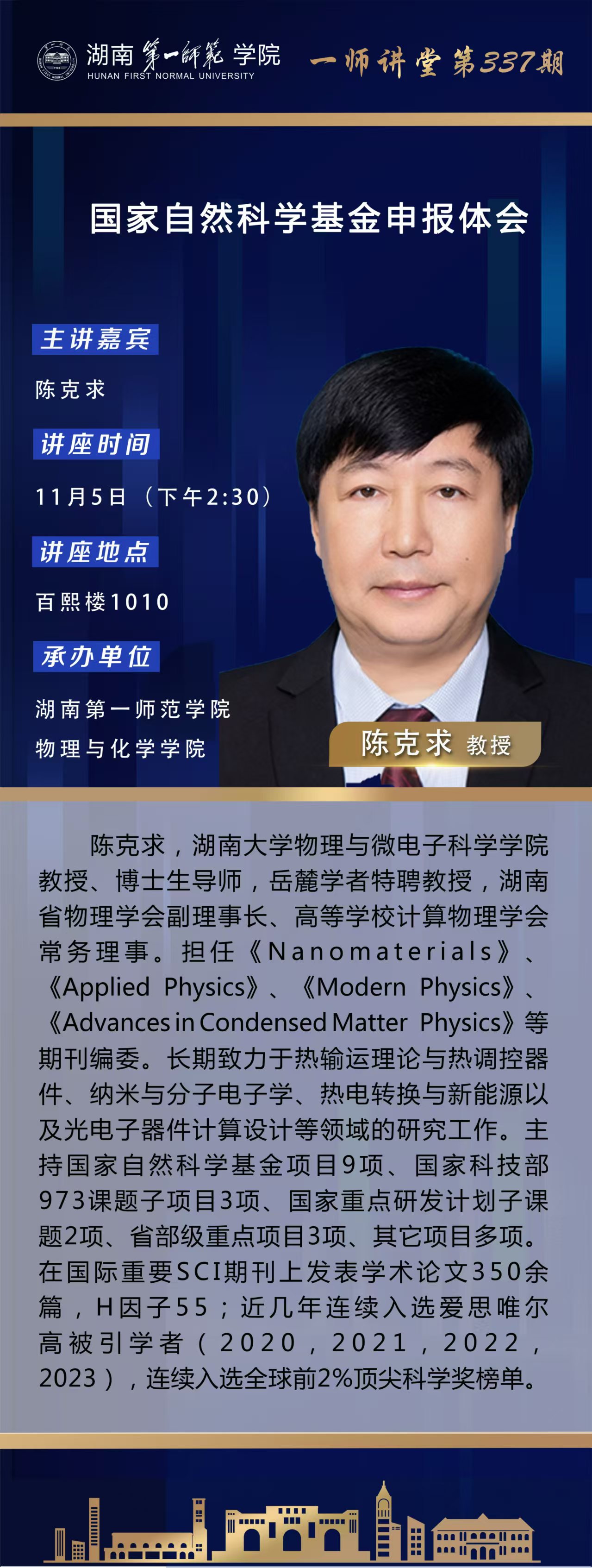 学术预告|一师讲堂第337期:国家自然科学基金申报体会
