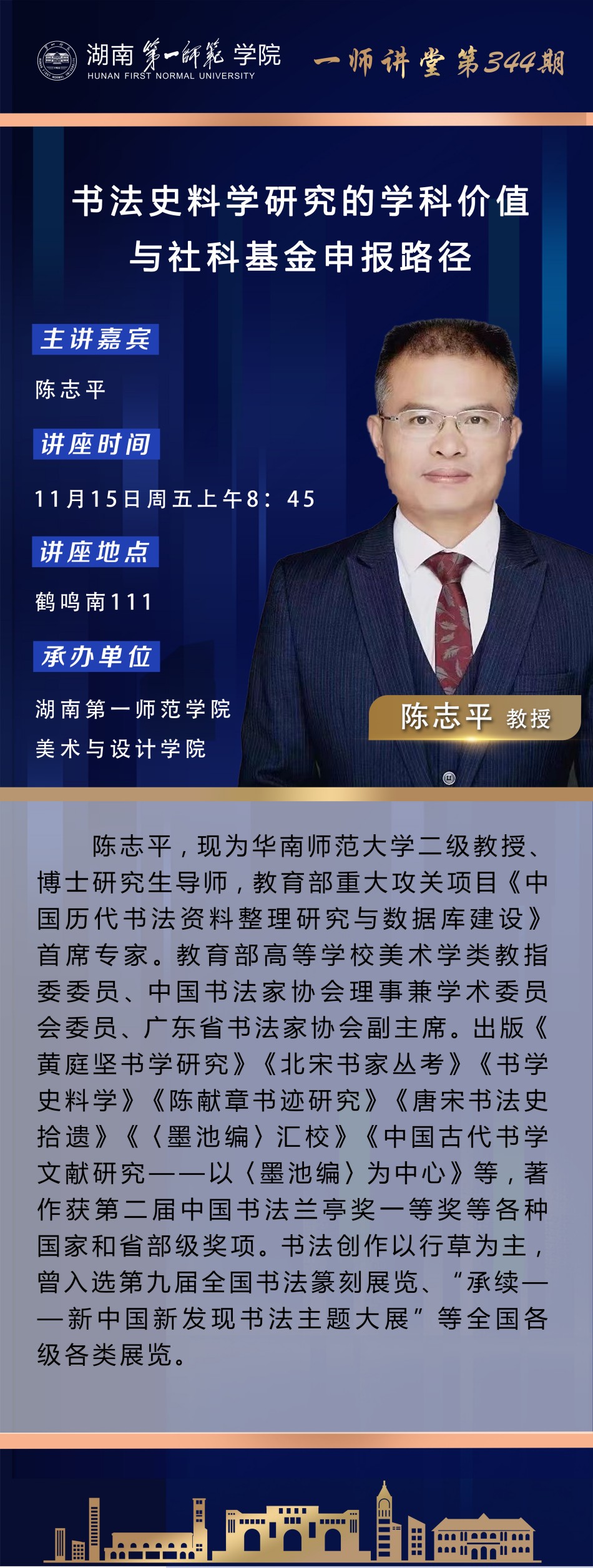 学术预告|一师讲堂第344期:书法史料学研究的学科价值与社科基金申报路径