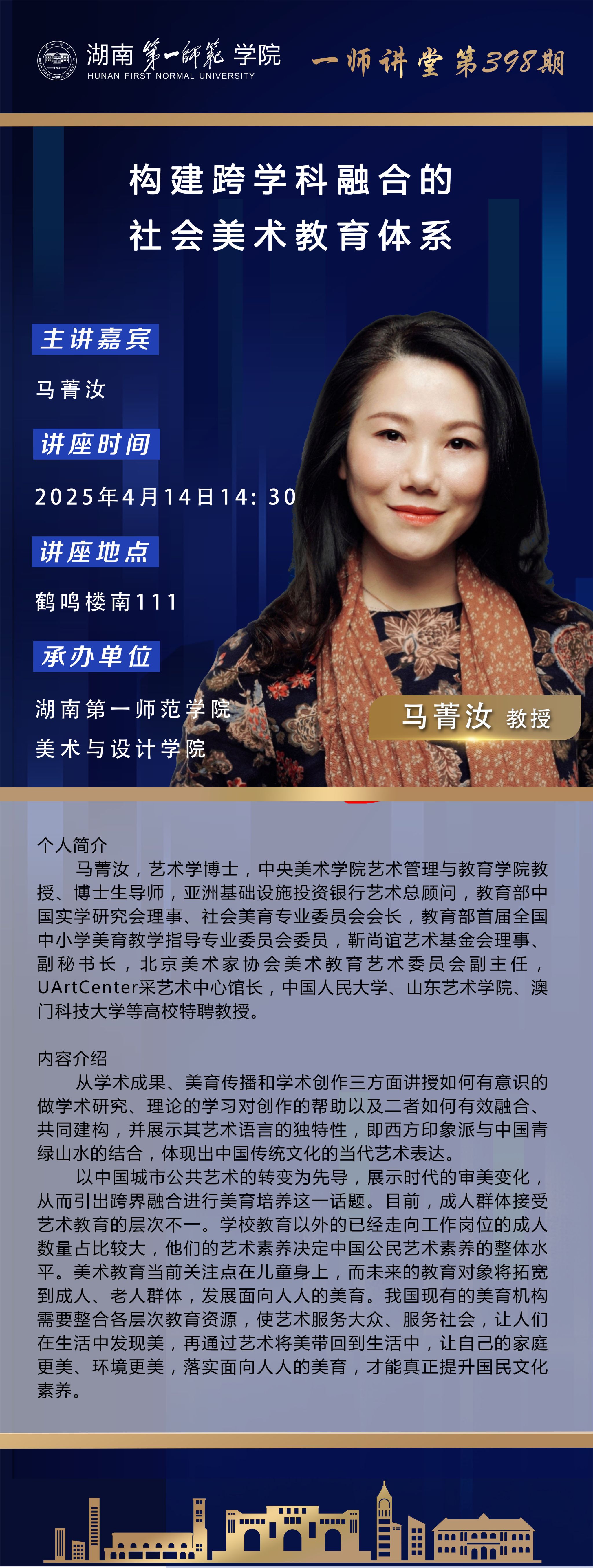 学术预告|一师讲堂第398期:构建跨学科融合的社会美术教育体系