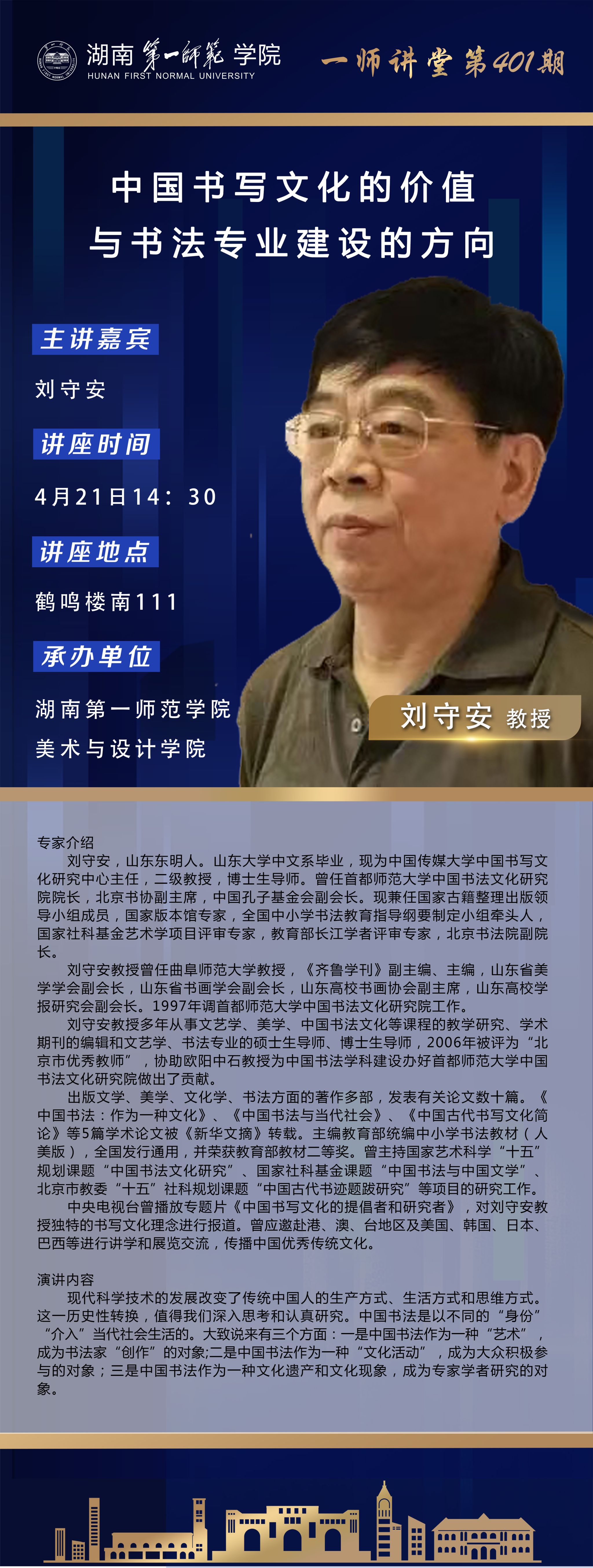 学术预告|一师讲堂第401期:中国书写文化的价值与书法专业建设的方向