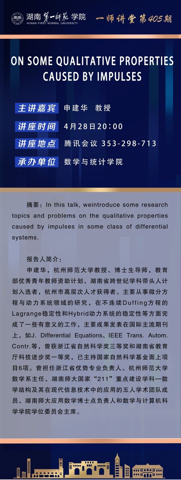 学术预告|一师讲堂第405期:ON SOME QUALITATIVE PROPERTIES CAUSED BY IMPULSES