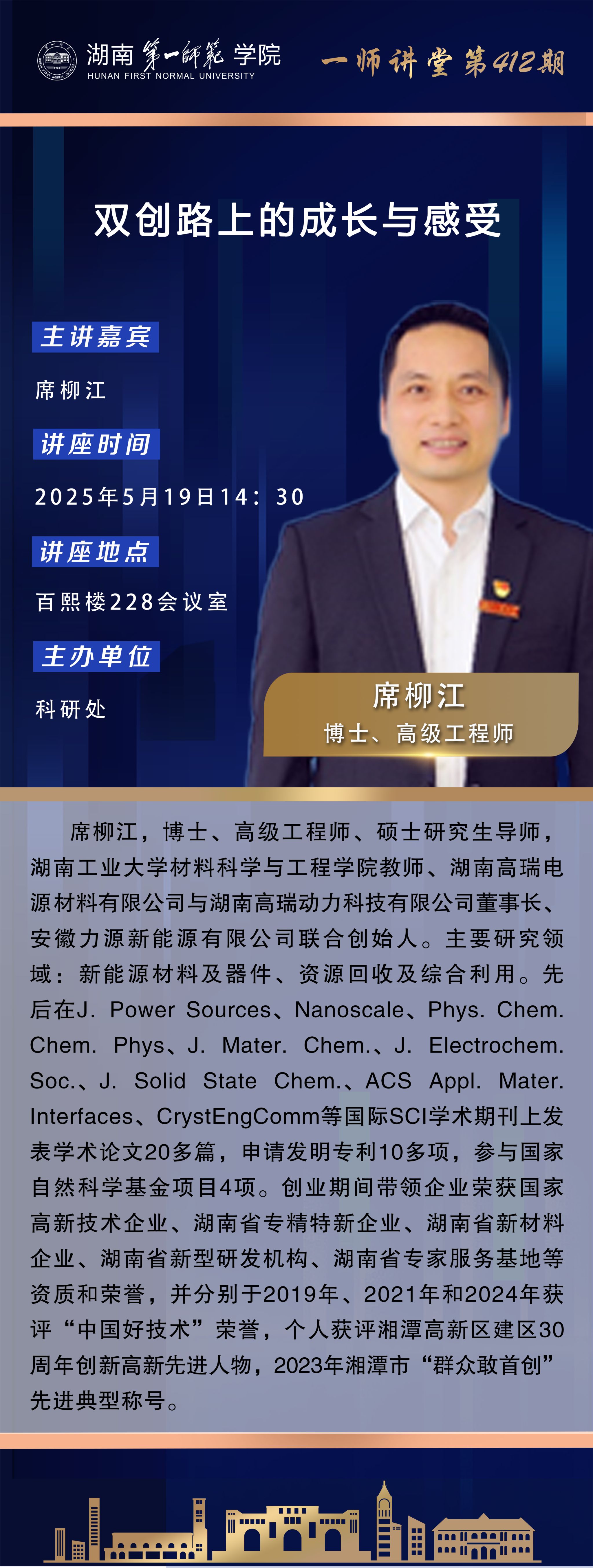 学术预告|一师讲堂第412期:双创路上的成长与感受