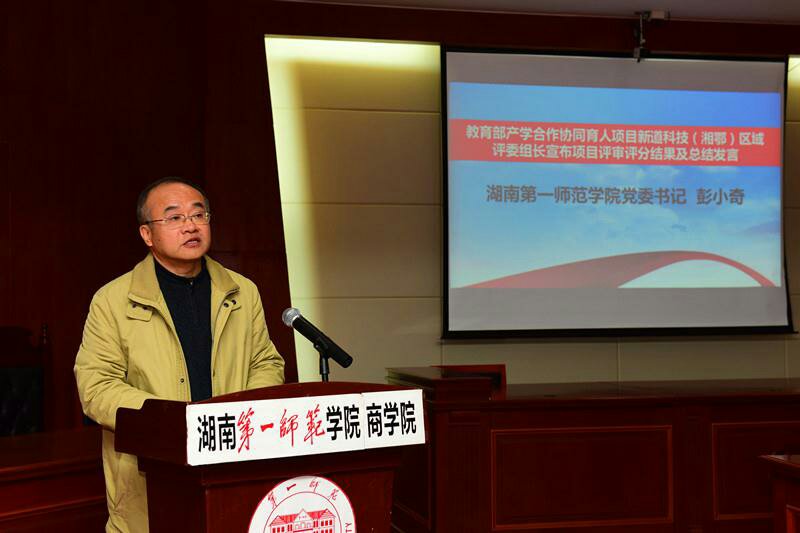2017年12月19日,由商学院承办的“教育部产学合作协同育人新道科技项目申报答辩交流会”在我校模拟法庭举行。来自北京、湖南、湖北的评审专家、16所高校的二级学院院长、教务处处长及实验室主任等近50名嘉宾出席答辩交流会。我校党委书记彭小奇受邀参加会议并出任评委主席。来自湖南大学、湖南师范大学、吉首大学、Kaiyun官方网站登录入口等9所高校项目负责人进行项目现场陈述与答辩。我校商学院庞俊亭博士主持的“基于校企协同的师范院校经管类专业双创人才培养模式研究”项目获得肯定,彭小奇书记作了精彩点评和总结发言。