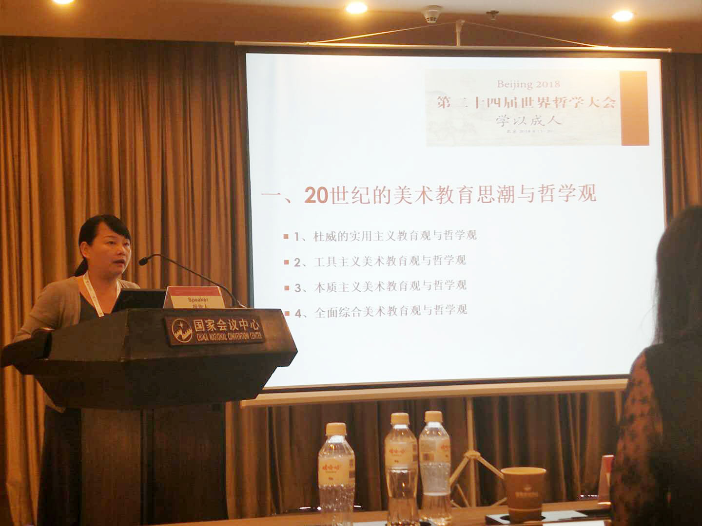 我校美术与设计学院的蔡惠萌老师受邀参加了本届世界哲学大会的开幕式及论坛,其论文《走向何方-现象学视野下的当代美术教育哲学反思》通过“美与艺术哲学”分组会议主席审核,并于17日下午做了会议报告。蔡老师的论文用现象学的观念对当代中国美术教育思潮与发展方向做了哲学性的思考,提出现象学的本体论、方法论和诠释学对当代美术教育的本质、当代美术课堂教学以及美术欣赏课都有一定的启示,论文中提出“作为二十世纪最重要的哲学观念,现象学对教育正在产生着重大的影响,这种影响也不可避免的波及美术教育。作为还身处其中的时代,这种影响要走向何方,还无法盖棺定论,写出答案。但是我们应该敏感的看到现象学哲学观念的导向,思考其与美术教育的关系,并在教学与实践中加以探索和研究。现象学的单一性、当下性、反思性这些哲学特性是否会烙印在当代美术教育的身上,还未可知。但教育研究从现象学的视角试图把隐藏在正在发生着的,未经反思的瞬间意图揭示出来,以便我们知道体现在行动中的意义,唤醒美术教育的自我意识,还原到它的本真之处已经开始显现。”