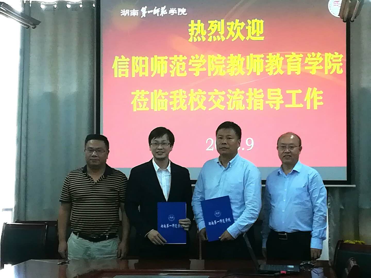 9月27日下午,信阳师范学院教师教育学院付永昌院长、李文田博士、张祥耀老师等一行3人来我校教育科学学院考察学习。我校科研处赵奇钊处长,教科院副院长胡春光及院长助理曾晓洁在特立楼北栋208会议室热情接待了来访人员。