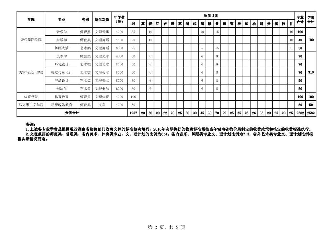 2016年高招分省分专业招生计划一览表
