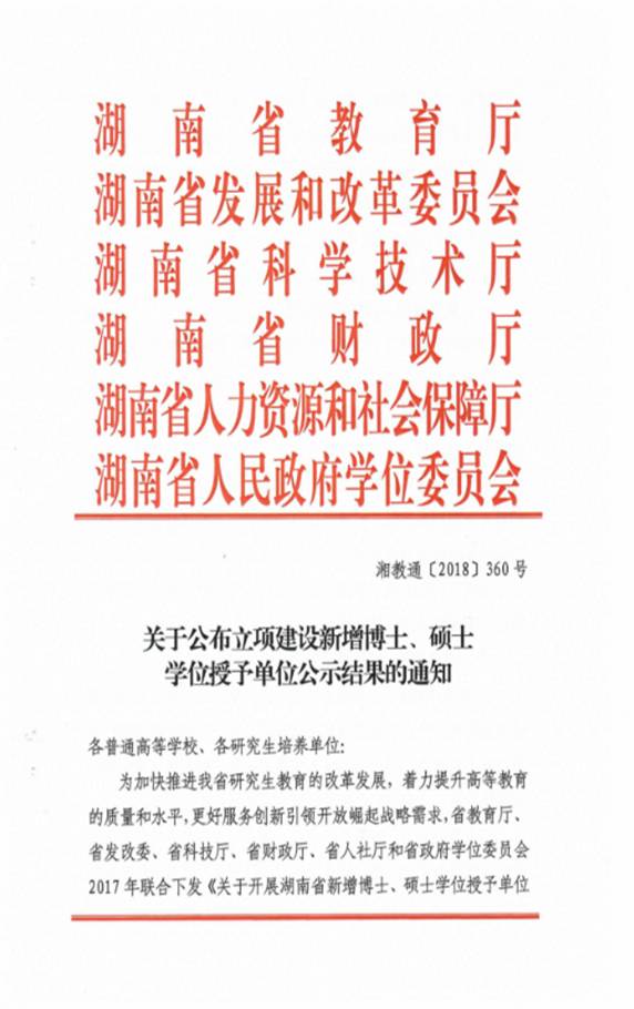 关于公布立项建设新增博士、硕士学位授予单位公示结果的通知