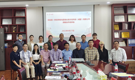 周发明代表学校对参加洽谈会的蓝海众浪领导表示热烈欢迎。他表示,蓝海众浪公司是同行业的领军者,此次双方举行战略合作洽谈,是我校深化产教融合、推进校企合作的又一有力举措。学校将充分发挥教育和人才资源优势,积极探索,有效整合资源,为推进学校艺术人才培养作出有益探索。
