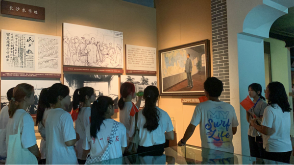 校团委学生干部打卡毛泽东与第一师范纪念馆。大礼堂、八班教室、水井、自习室、阅报室、君子亭……走在属于同学们自己的红色校园里,听着一个个红色历史故事,100多年前那段激情澎湃的岁月近在眼前。物理与化学学院邓磊同学表示:“我要向青年毛泽东学习,秉承‘要做人民的先生,先做人民的学生’的校训,在一师打好坚实的学问基础、思想基础、身体基础和实践基础。”