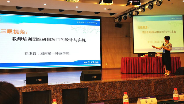 教育部指定我校作为地方院校之一做典型发言。现代教育发展学院徐卫良作题为《三眼视角:教师培训团队研修项目的设计与实施》的发言,从“飞鸟之眼定方向”、“蜻蜓之眼做设计”、“蚂蚁之眼抓实施”三个方面,介绍了我校教师培训团队研修项目的主要做法和成效,得到了与会领导、专家和同行的一致好评。