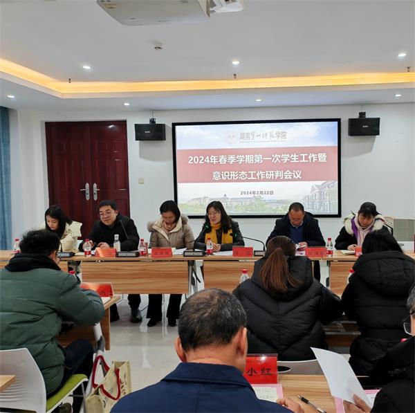 2月22日下午,我校2024年春季学期第一次学生工作暨意识形态工作研判会在百熙楼414召开,副校长蒋蓉出席。学生工作部部长张福国主持会议。