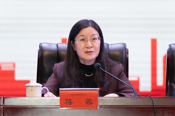 蒋蓉向大会的召开表示热烈祝贺。她高度肯定了过去一年学生会组织在在思想引领、学业辅导、就业创业支持、社会实践、困难学生帮扶以及校园文体活动开展等方面取得的工作成果。蒋蓉指出,各位学生代表应更好地发挥桥梁纽带作用,更好服务青年学子成长成才,并提出三点希望。一是希望各级学生会组织把牢政治方向,凝聚青年力量,争做忠诚于党的追随者;二是希望广大学生骨干切实履职尽责,提升服务能力,争做高质量发展的贡献者;三是希望全校青年学子坚定理想信念,磨砺过硬本领,争做挺膺担当的奋斗者。