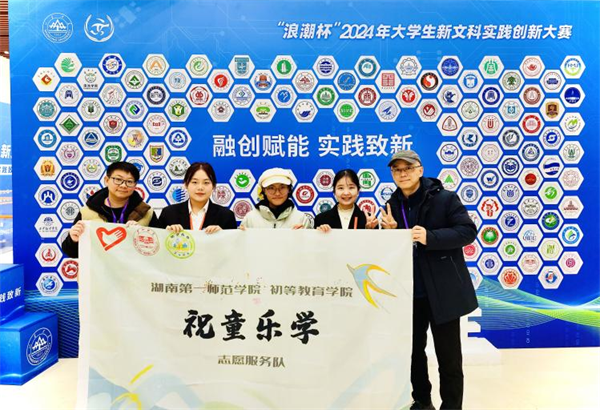 “祝童乐学”团队来自初等教育学院,由杨翼丞、兰华两位老师指导,经校赛、省赛层层选拔,进入全国决赛。决赛现场,团队核心成员刘依贝、杨米琪、索朗措姆三位同学各尽其职、通力合作,凭借过硬的专业实力和出色的临场发挥,一路过关斩将,最终在全国404支本科生、研究生决赛团队中脱颖而出,荣获银奖。