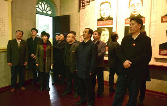 在我校城南校区,代表团一行来到毛泽东与第一师范纪念馆,参观了陈列展厅、毛泽东主席在一师求学时的大礼堂、教室、寝室和阅报室,了解了我校发展的历史沿革以及毛泽东主席在湖南一师的求学和生活经历,重温毛泽东等老一辈革命家的光辉业绩、崇高精神和道德风范。